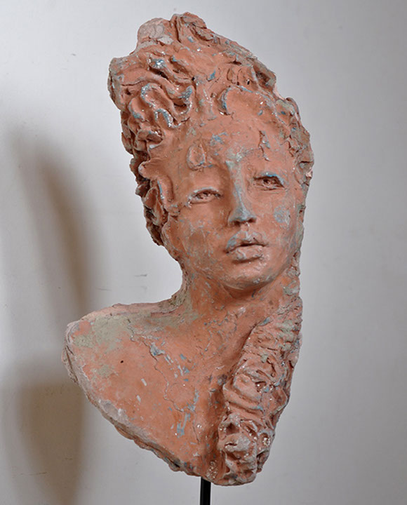I like to think that every intimate aspect of the human being has a natural, timeless and mysterious dimension, which in turn is the narration of a story, more or less intertwined with the other aspects. Imagining the sculpture in this visionary way, I manage to space, within more or less immediate figurations and to give shape to some of the facets of my universe, which are my emotions, overbearing or impalpable, or the most difficult to face. For me, emotions, as well as temporal moments, difficulties, forms, sounds, materials, intentions, colors, are single bricks of the Universe of different matter and Time, it is a Unique and a Together. My sculptures are born in an expressive figurative language, and are private and secret actors of the same piece, the Man and his concerns, his wonders and banalities. It is through them, through emphasizing meanings and nuances of Being, to make them emerge and be recognized, that I learn to accept every meaning and nuance of what is around me, and inside.
